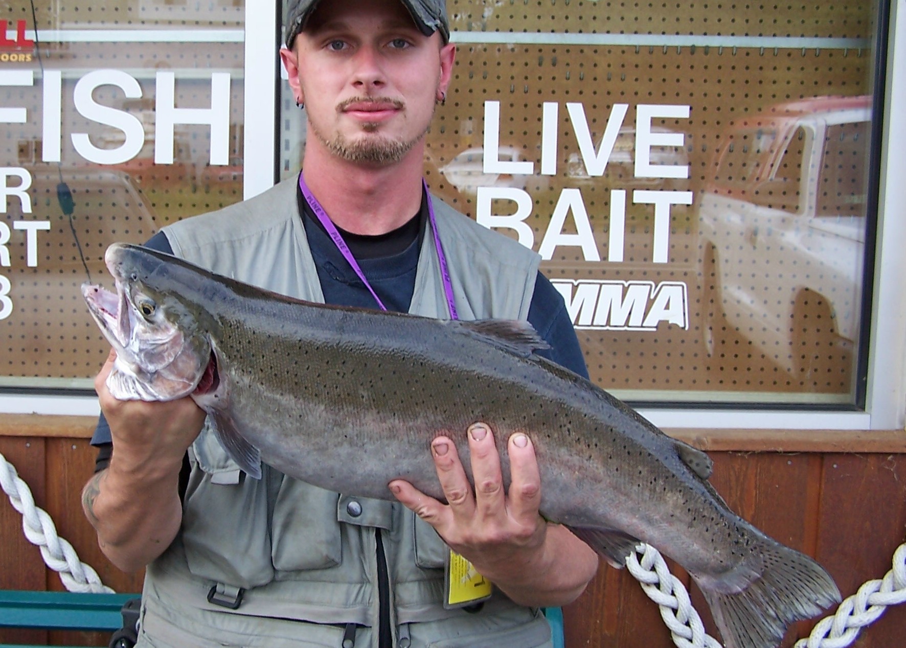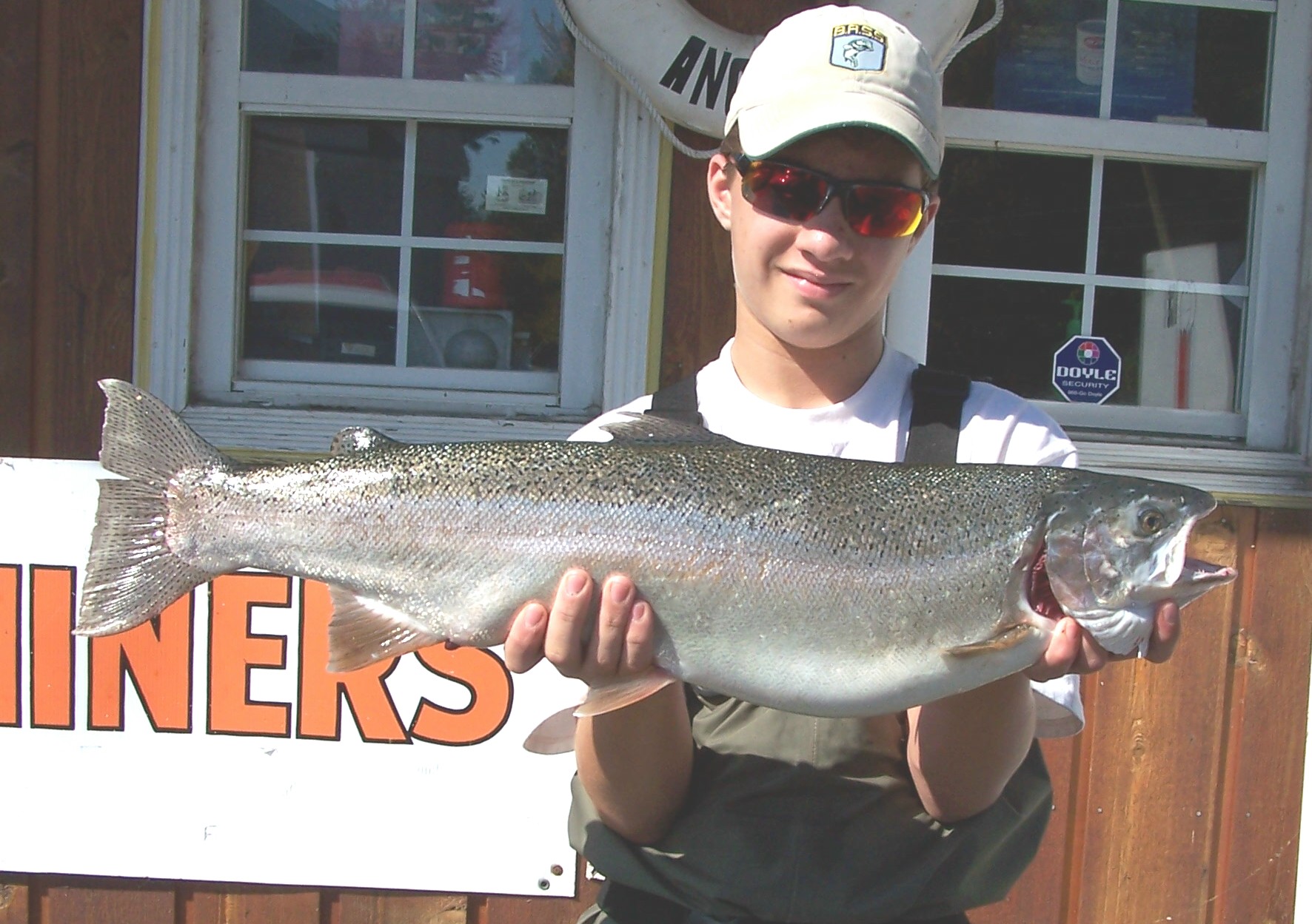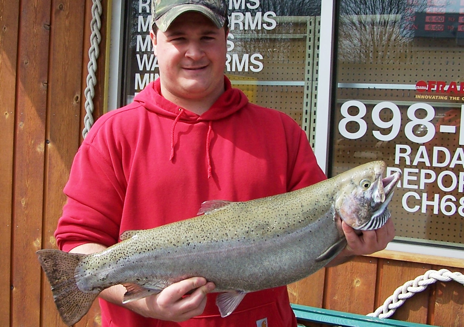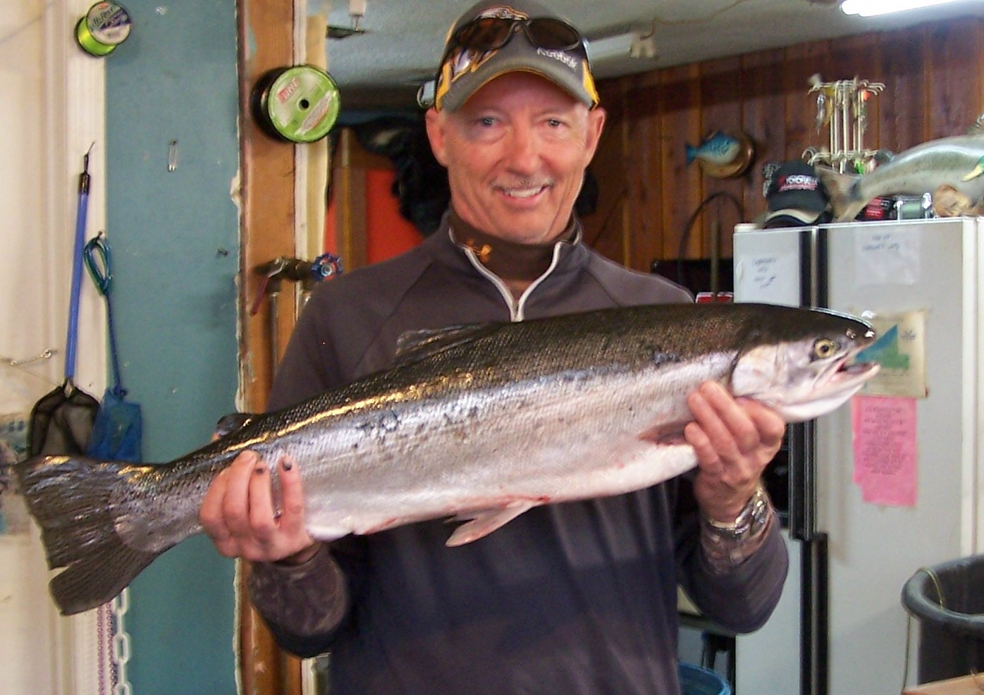 Mike with his first steelhead caught at 16 Mile with a weight of 6 1/2 lbs.