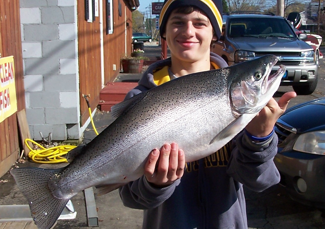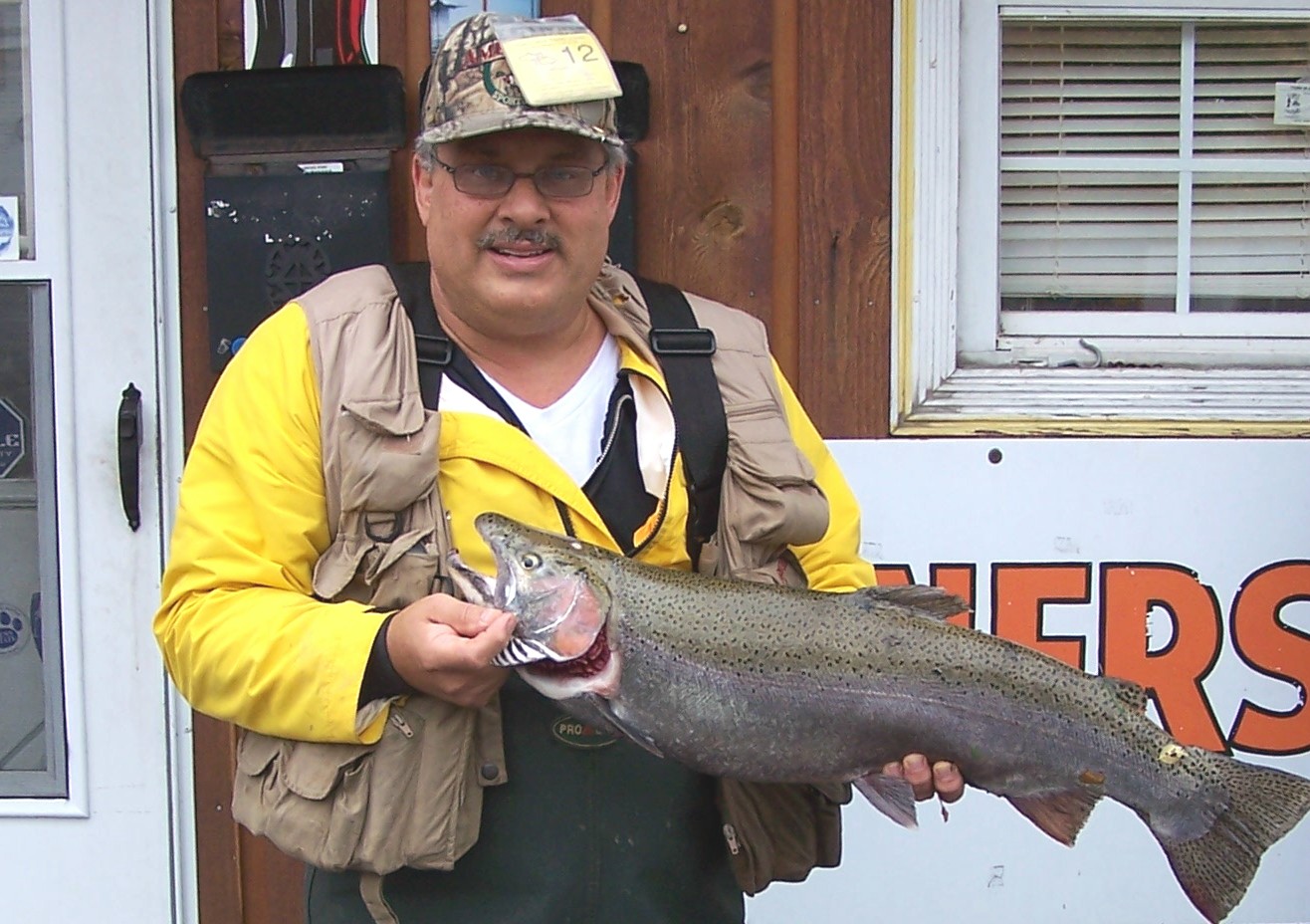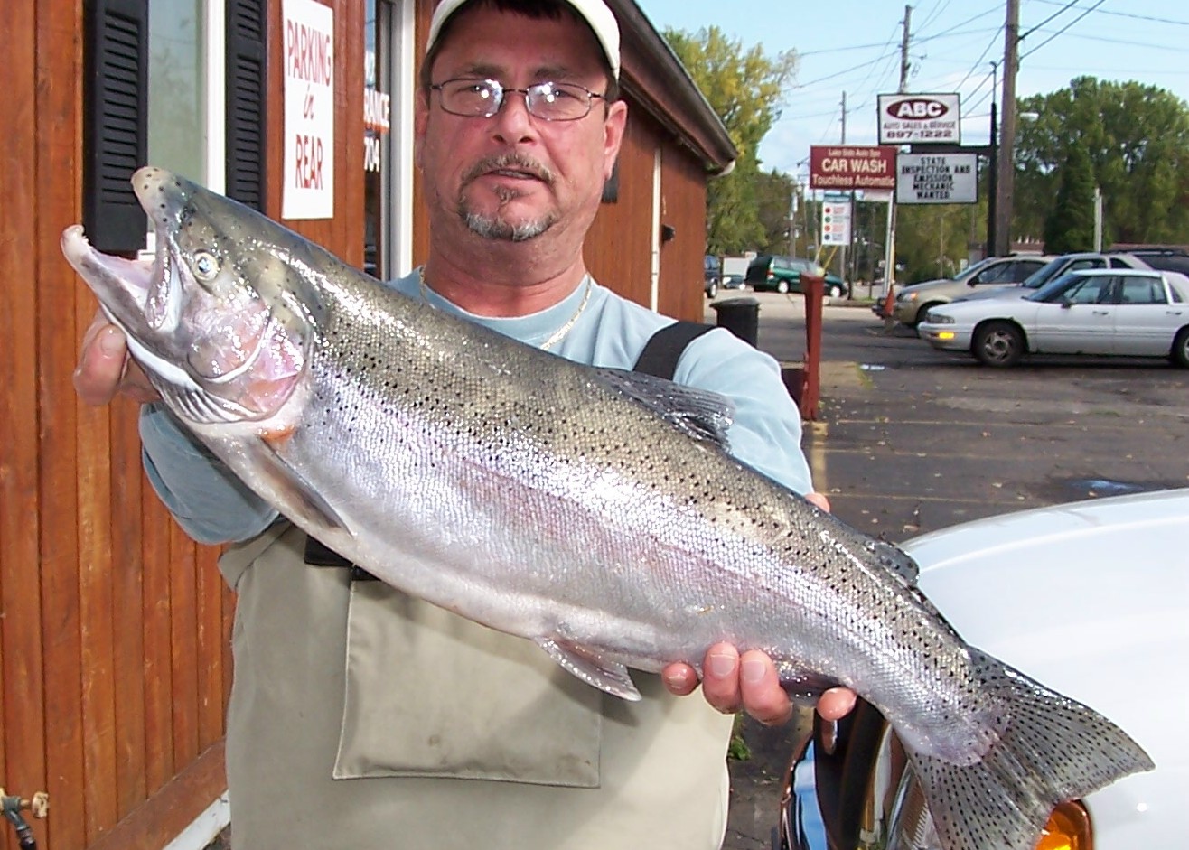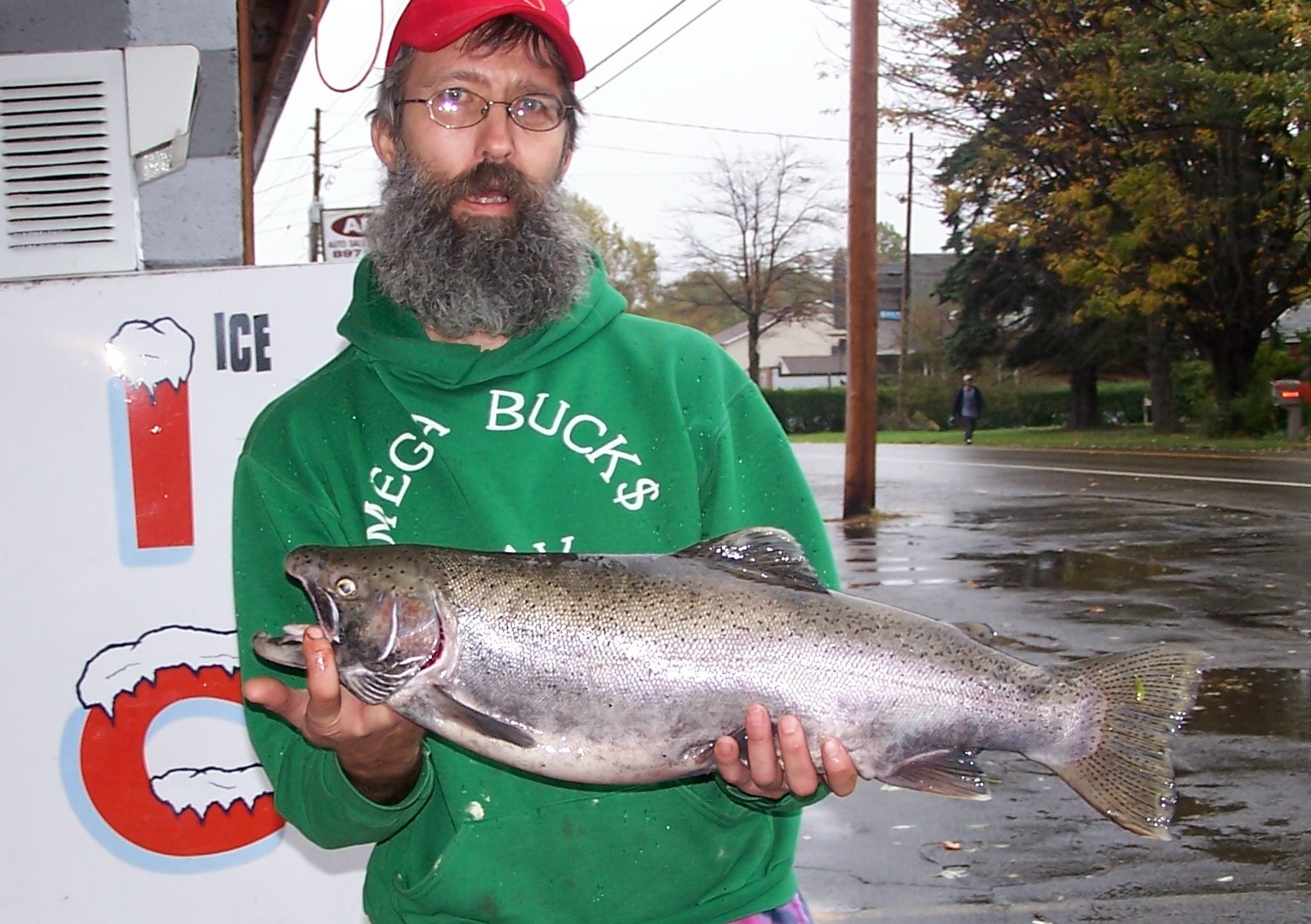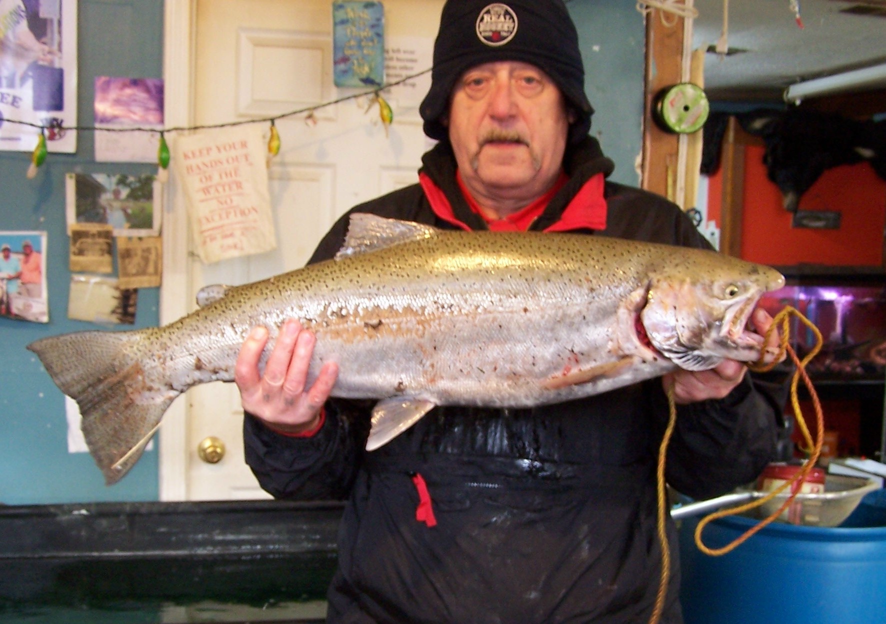 Mike with his first steelhead caught at 16 Mile with a weight of 6 1/2 lbs.