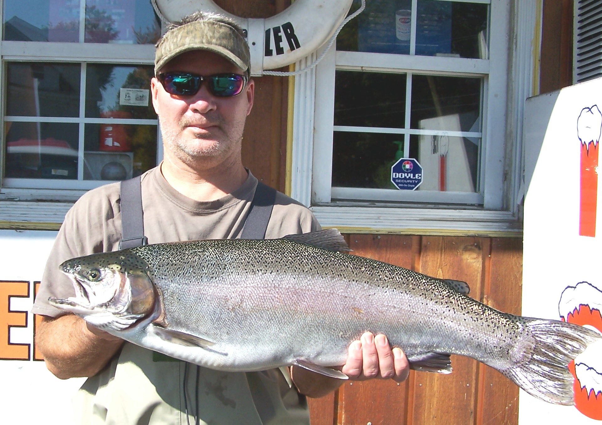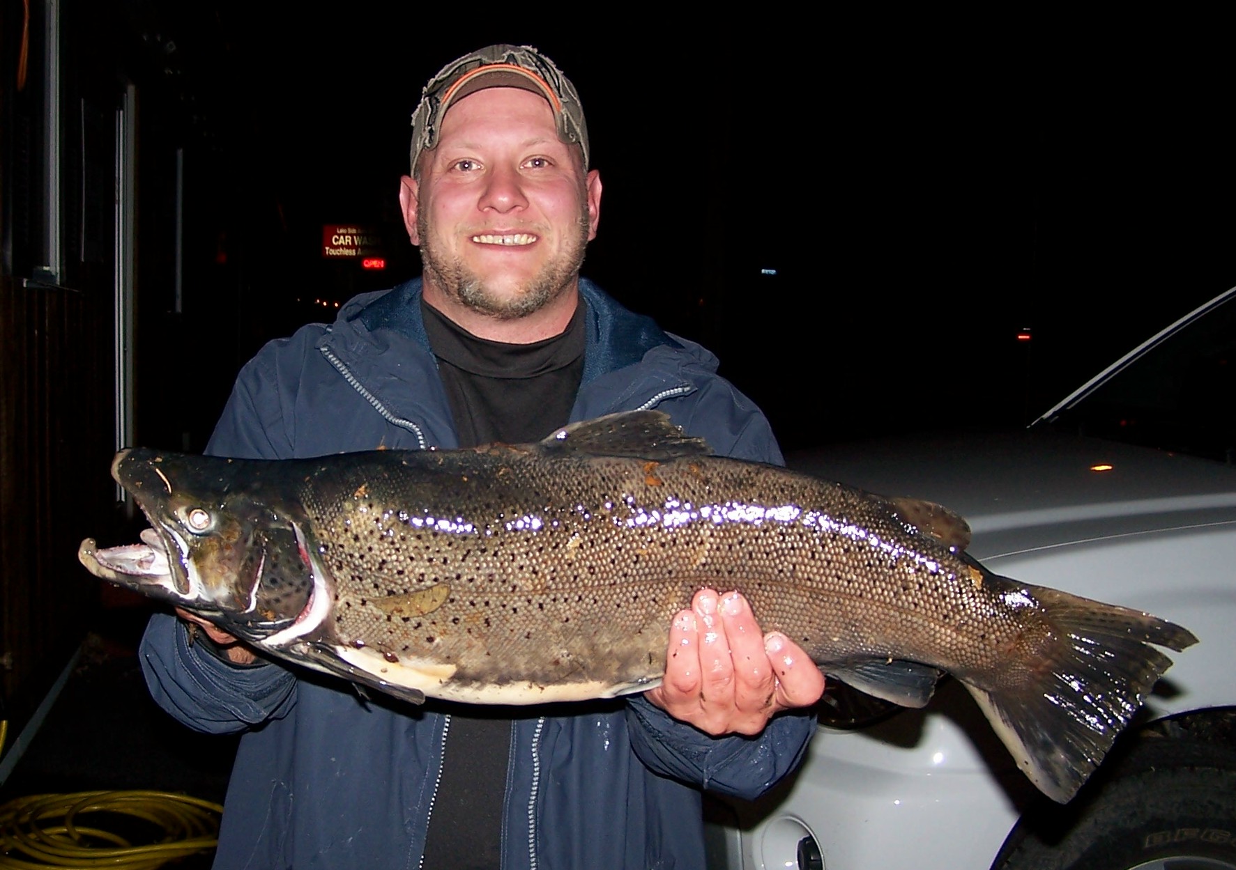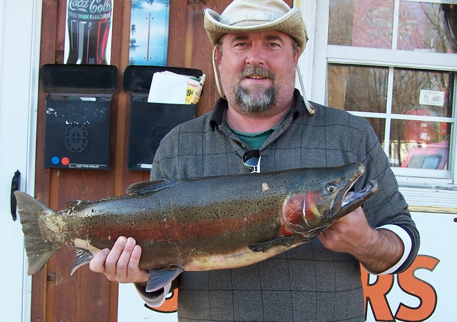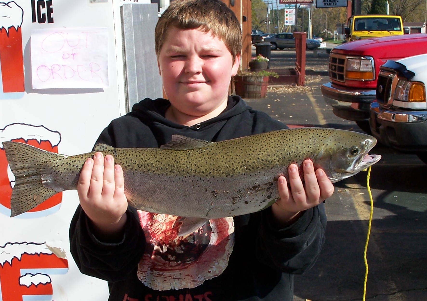 Mike with his first steelhead caught at 16 Mile with a weight of 6 1/2 lbs.