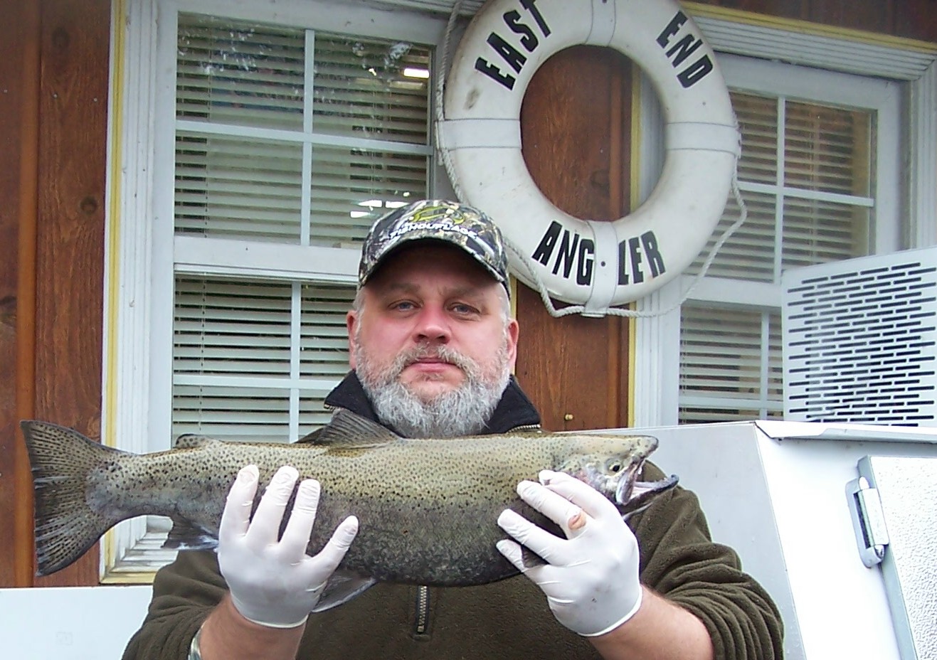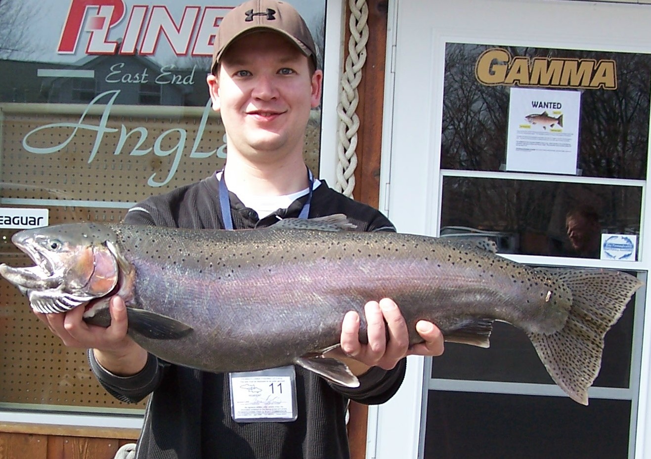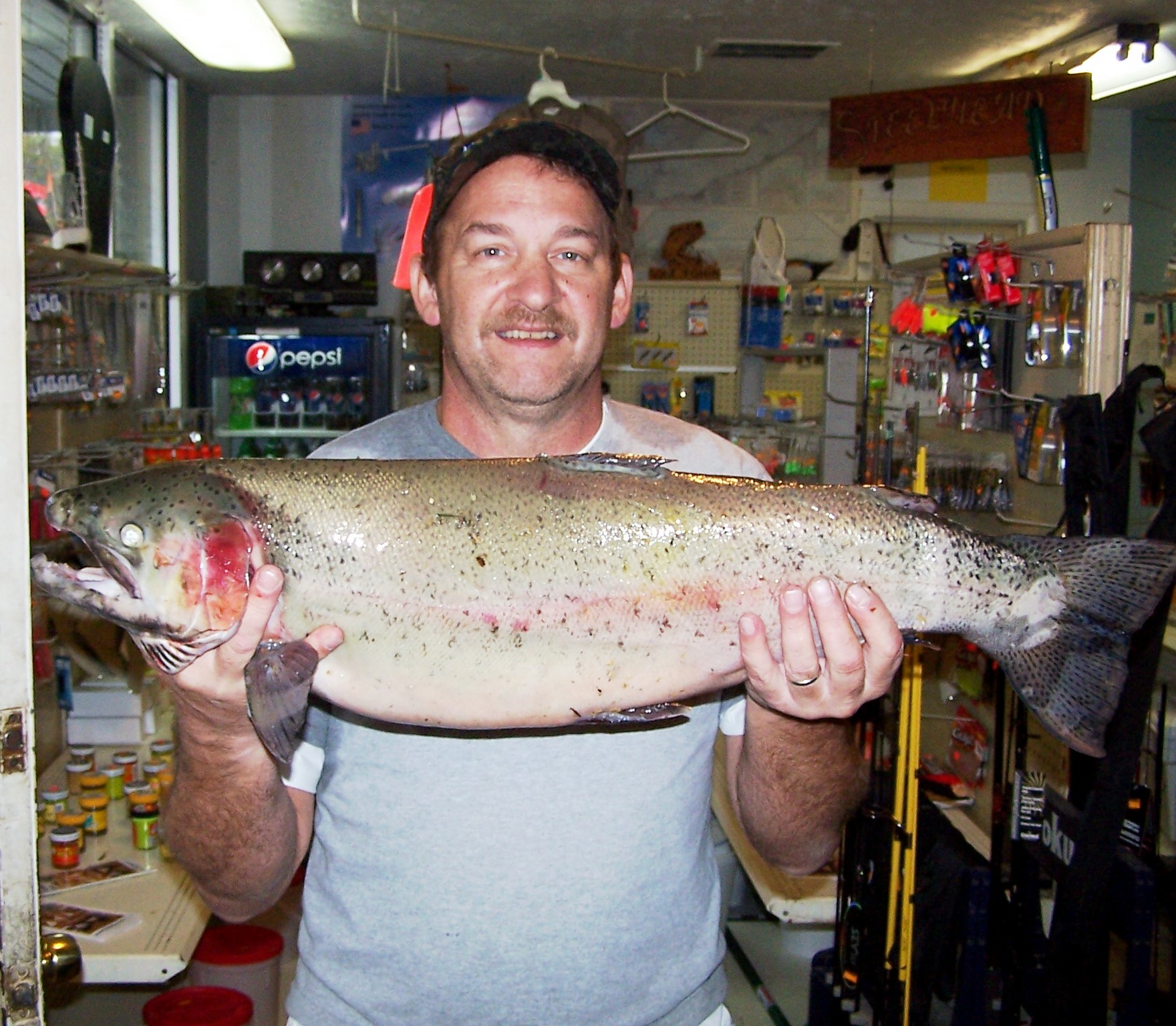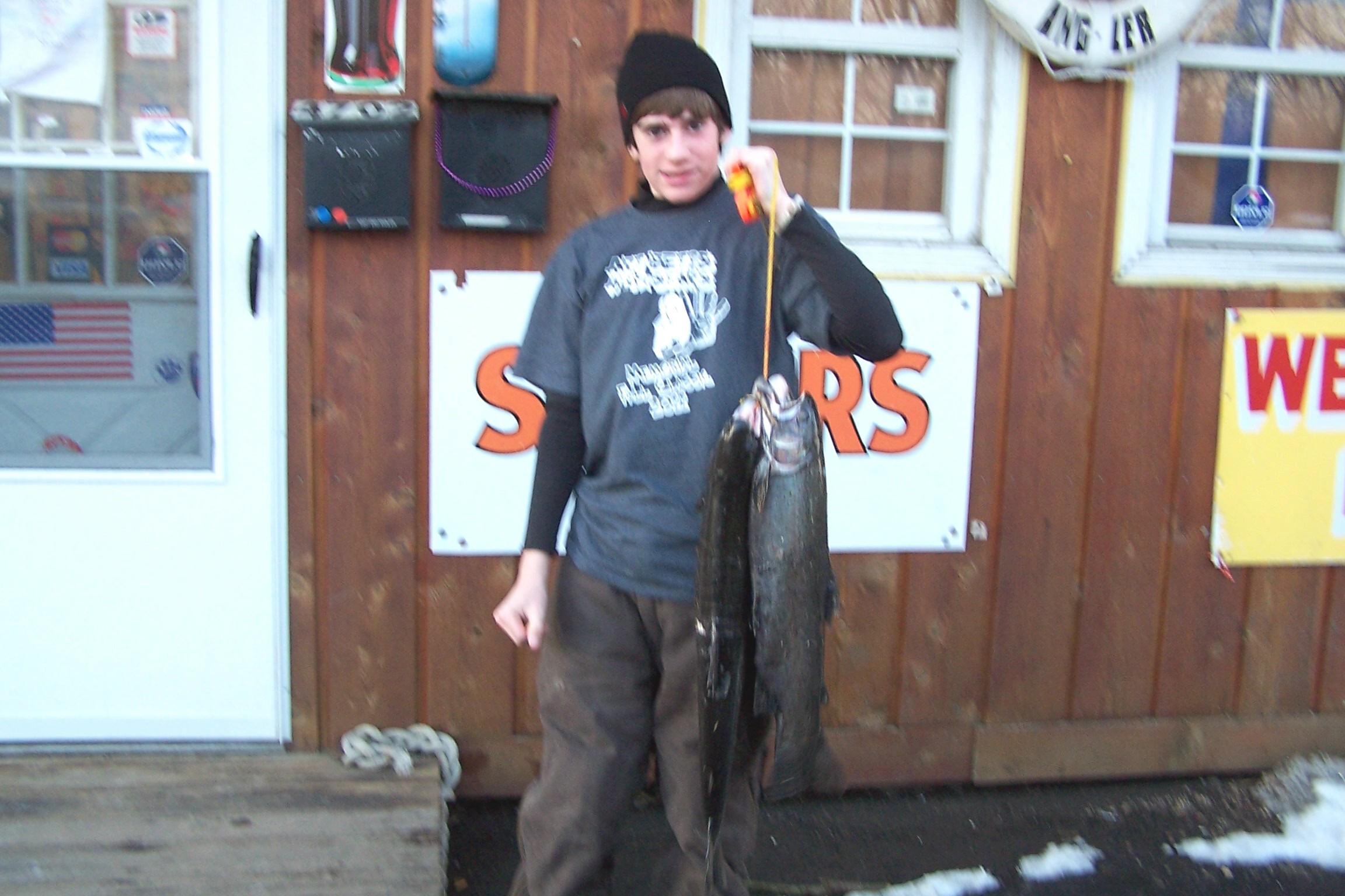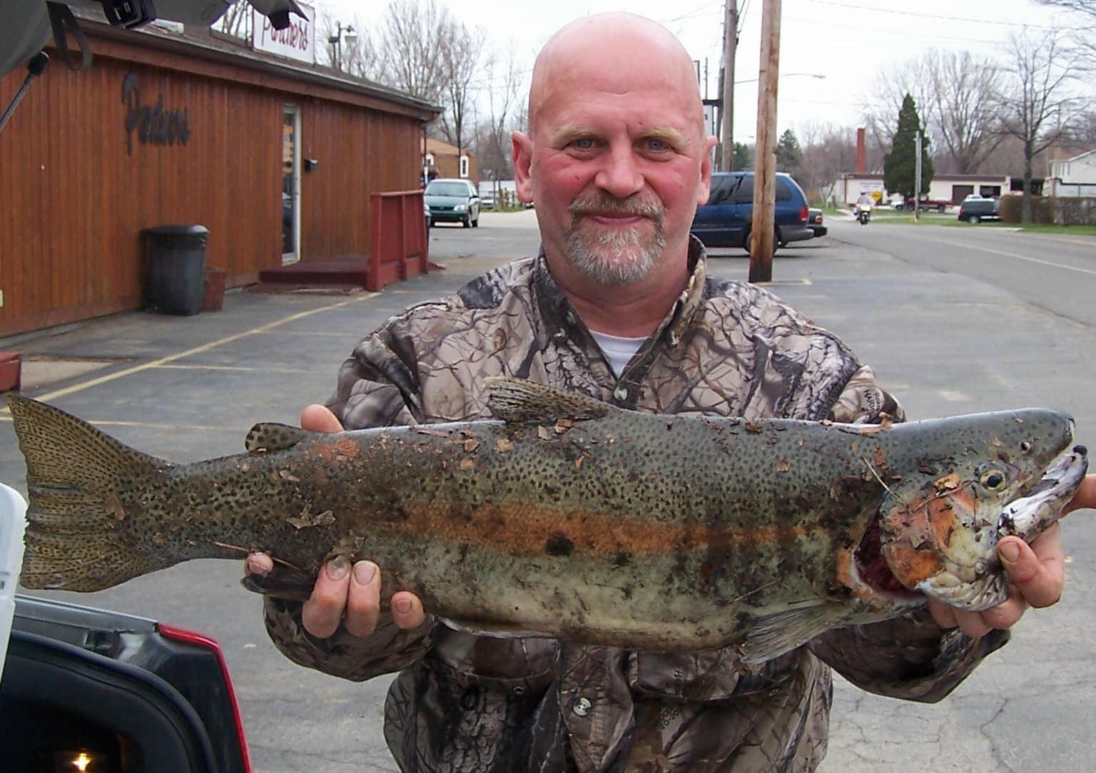 Mike with his first steelhead caught at 16 Mile with a weight of 6 1/2 lbs.