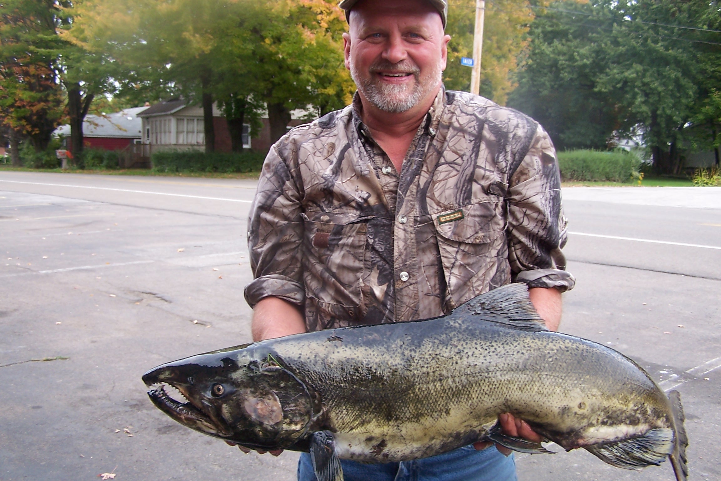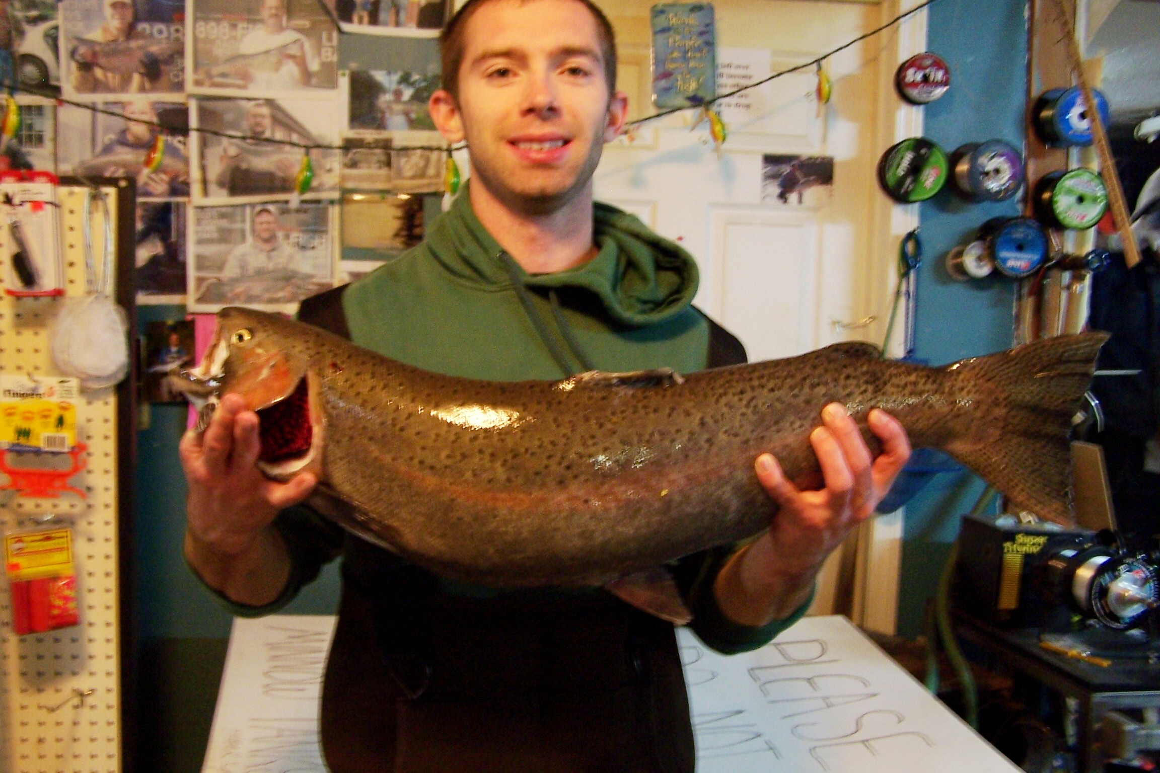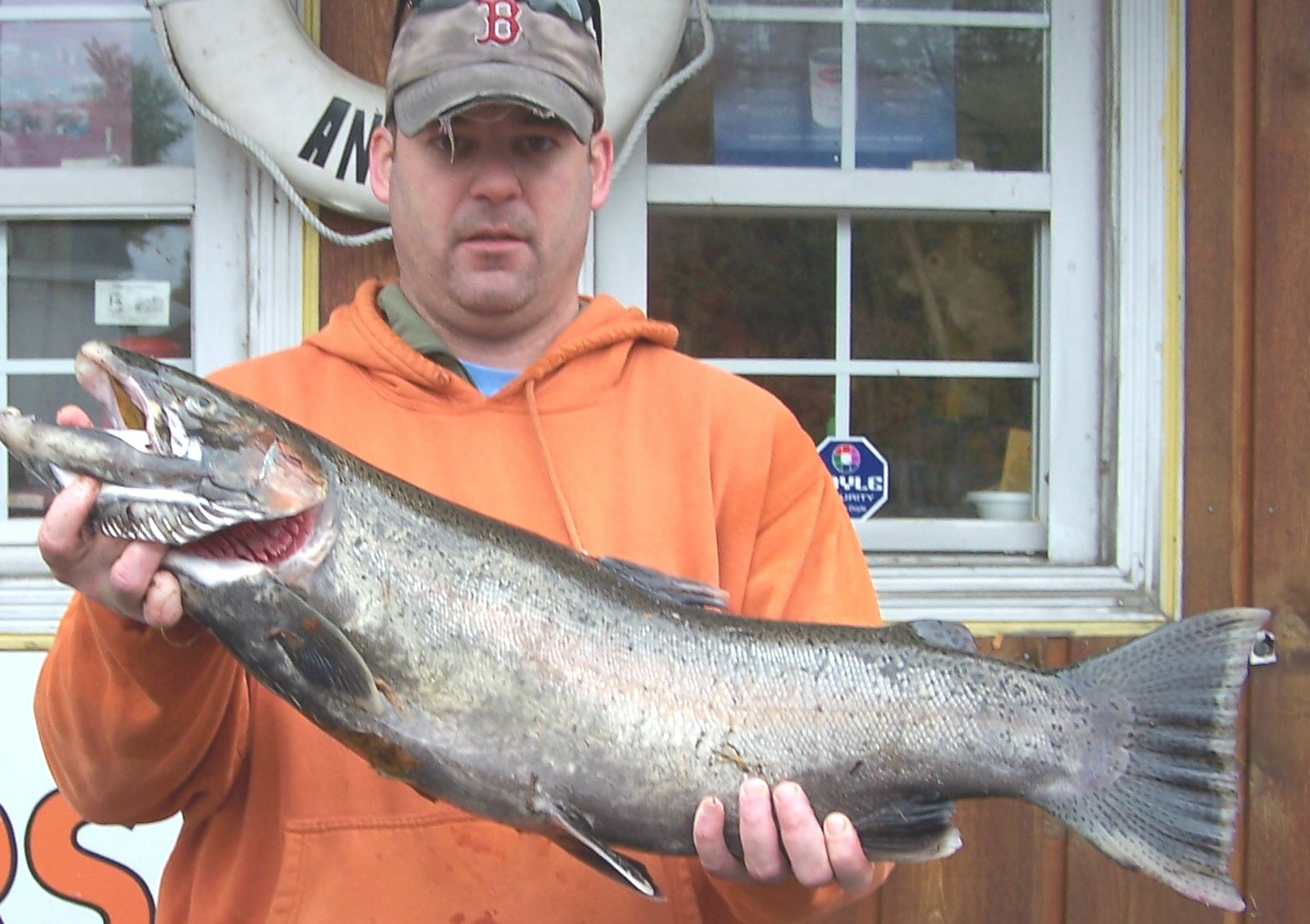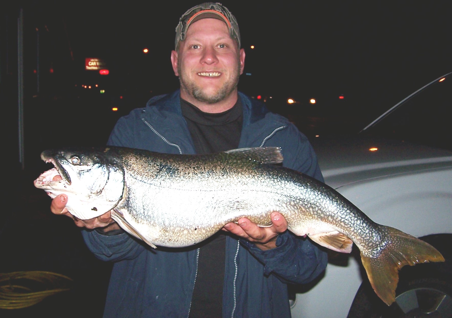 Mike with his first steelhead caught at 16 Mile with a weight of 6 1/2 lbs.