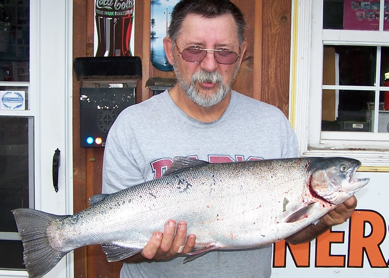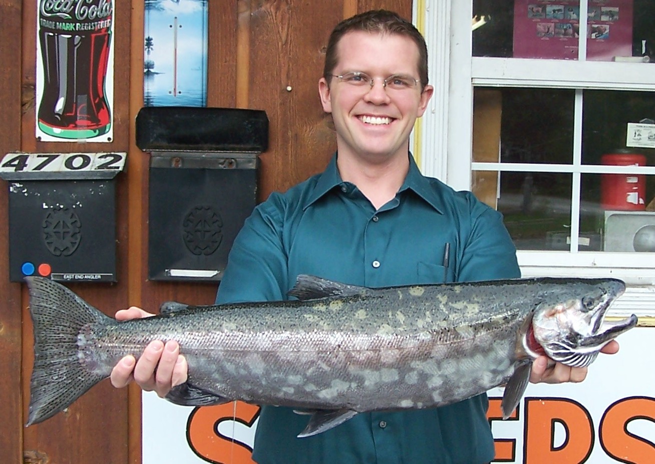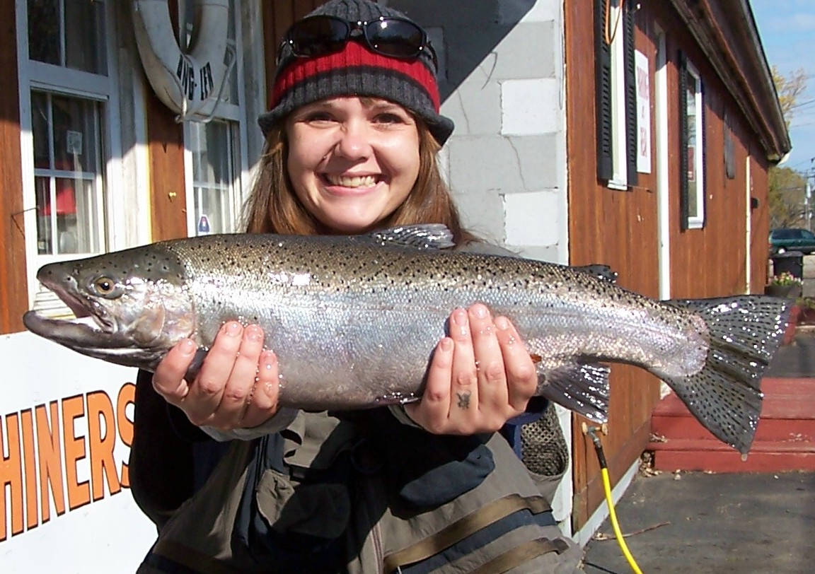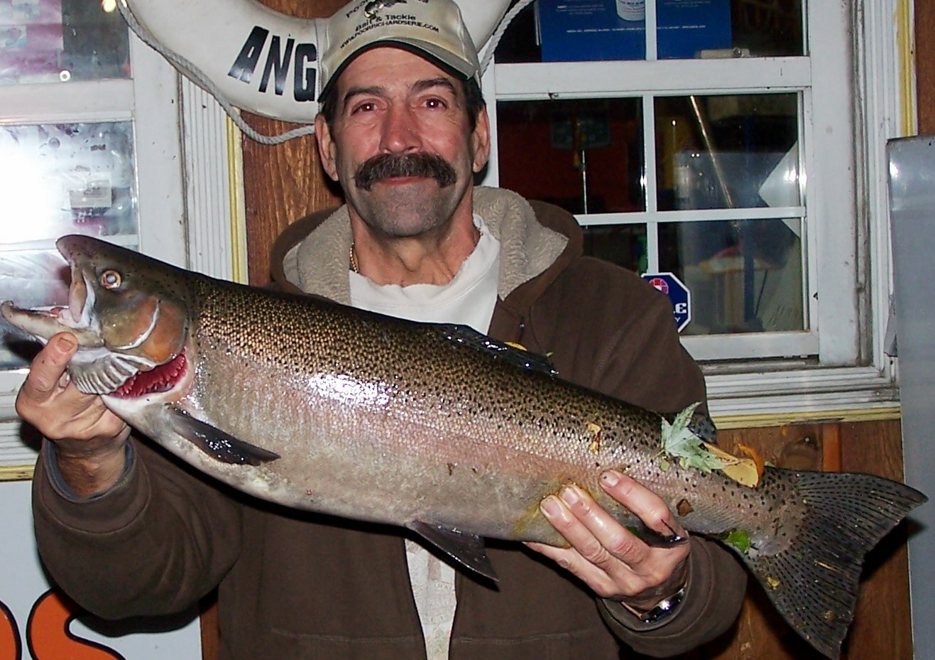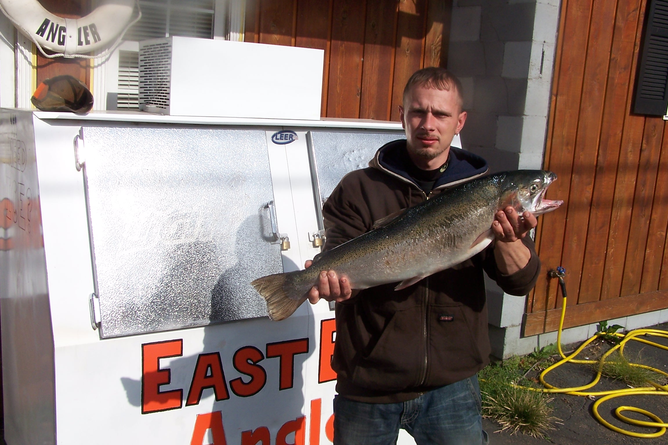 Mike with his first steelhead caught at 16 Mile with a weight of 6 1/2 lbs.