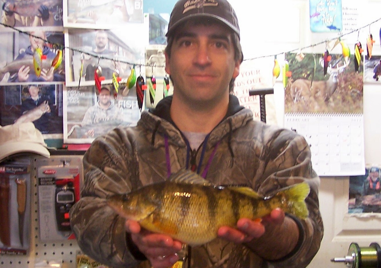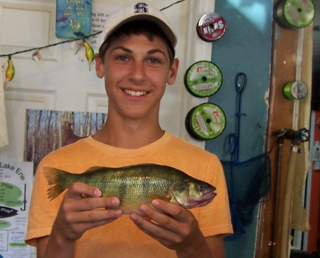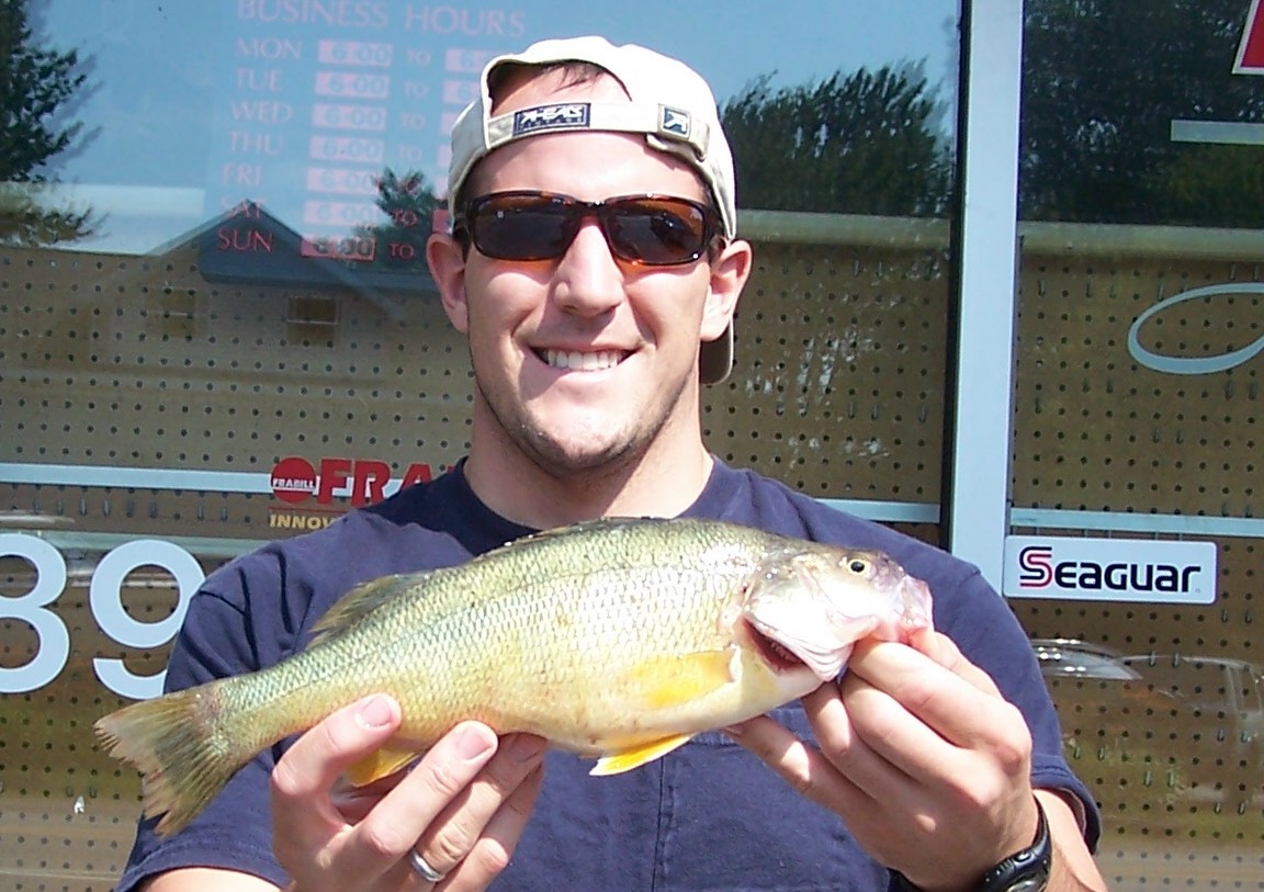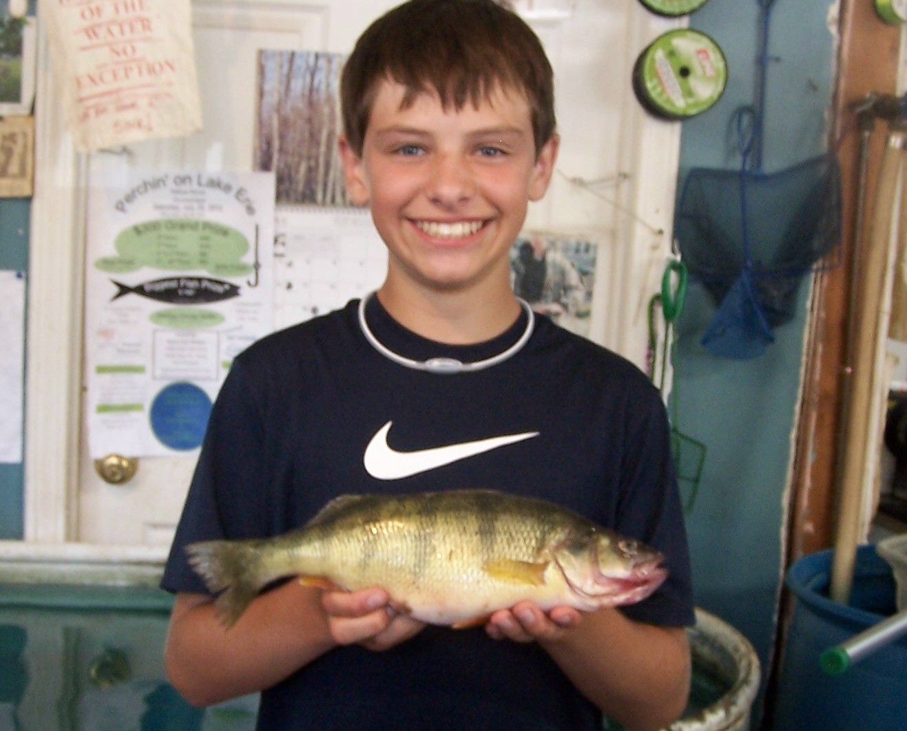 Here is Jamie with his perch he caught at Liberty Park yesterday. Weight was 1.10 lbs and was 12" long!