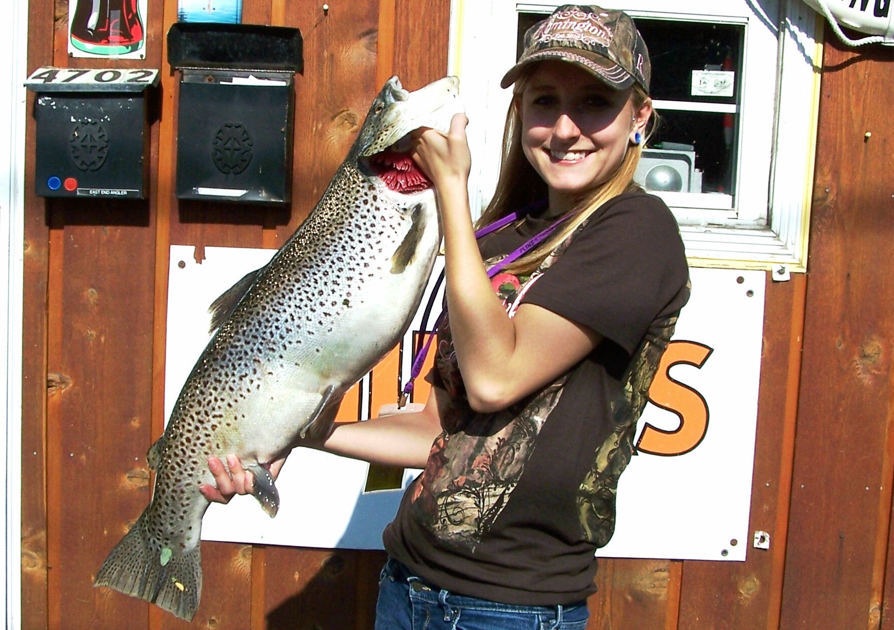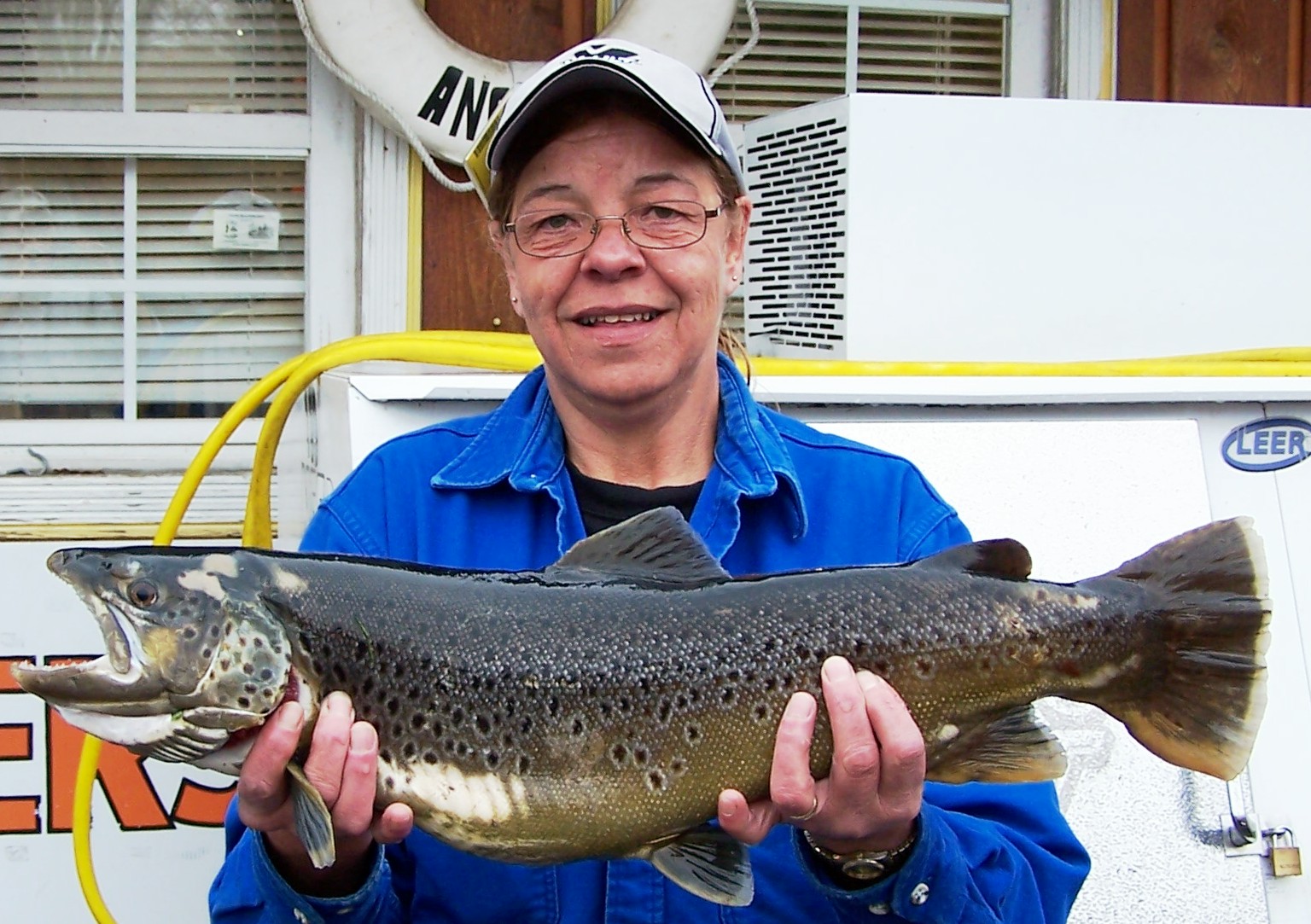 Congratulations to Celena on landing this 30", 15.14 lb Brown trout while casting spoons in the lake at the mouth of 20 Mile Creek. This was her very first trout she has ever caught.