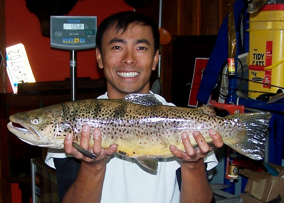 Phat Lam with 2 fish one steelie at 10.68 lbs & a 6 lb brown both from 4 Mile.