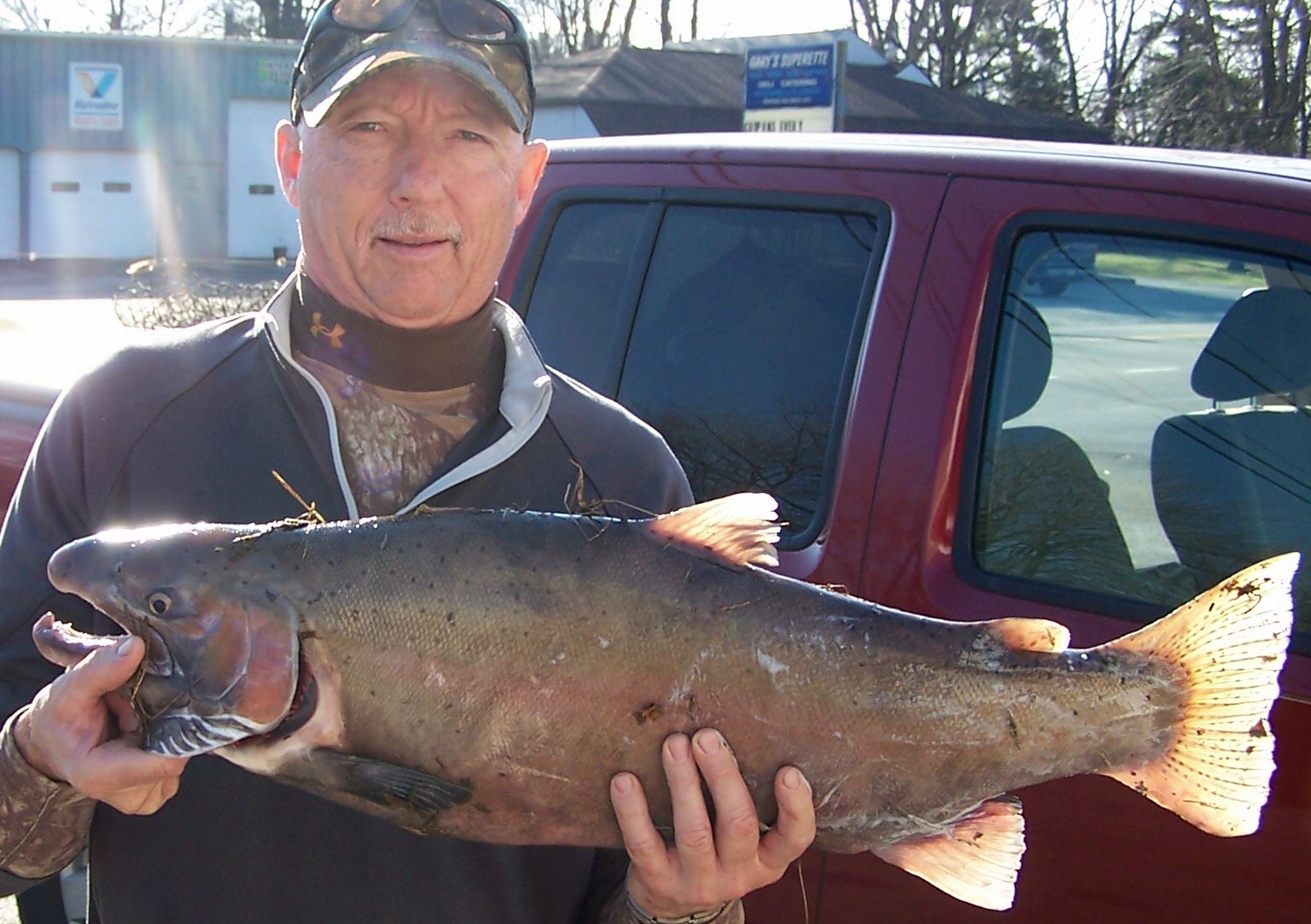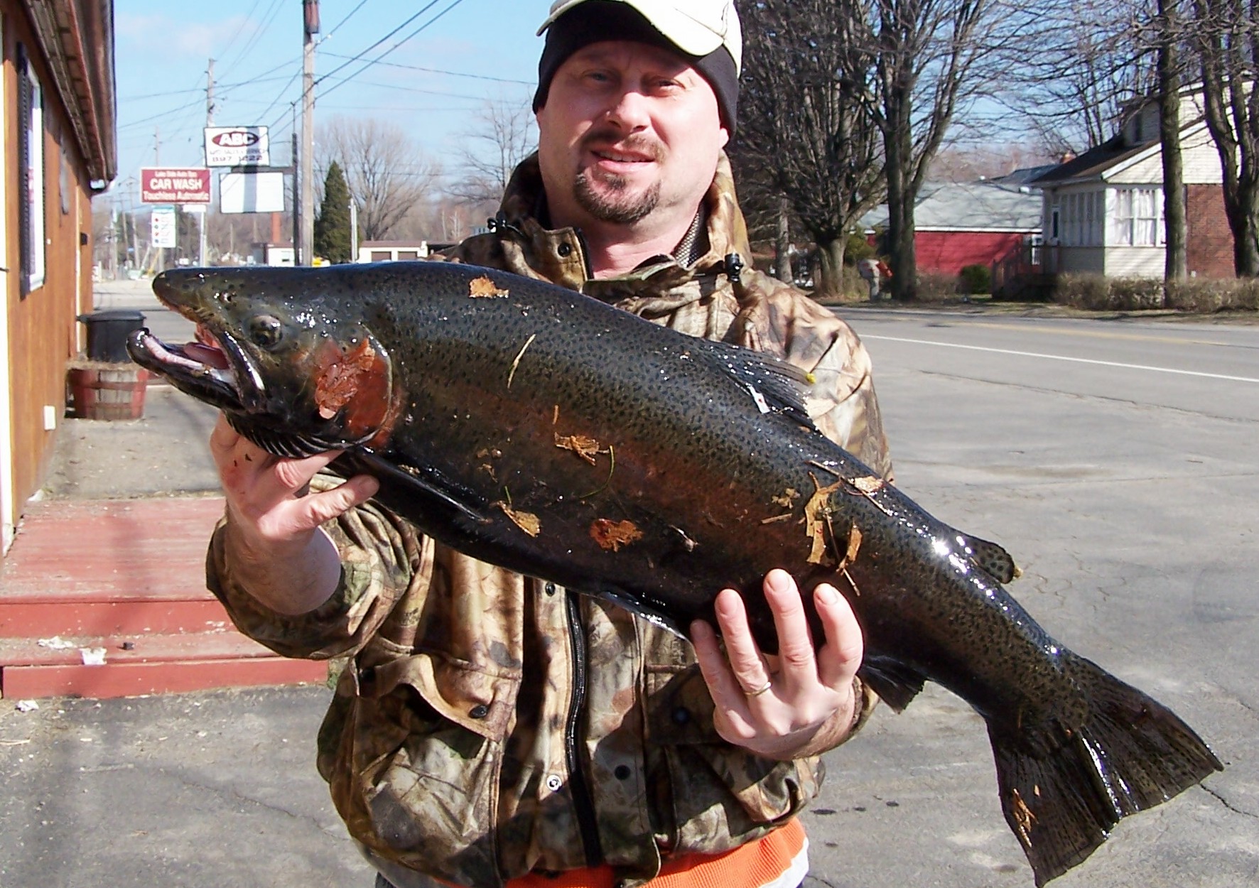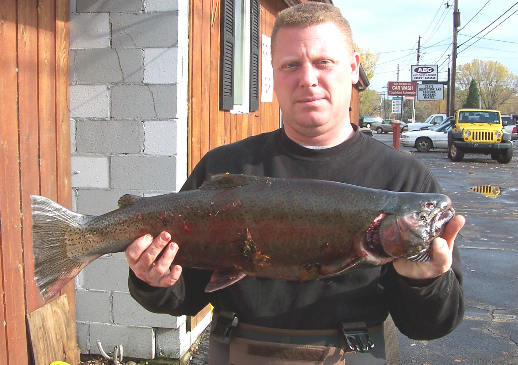 Here is a picture of a very nice steelhead that Ralph Maletto caught yesterday that was 13 3/4lbs. This was one of 31 that he caught. Plus there was another one that was even bigger that he let go.